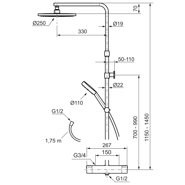 Sturtuhaus 25 cm Stillanleg handsturta Öryggisstopploki í 38° hita Skiptir innbyggður í tæki